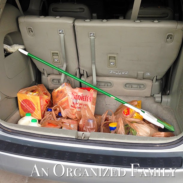 Look how neat and tidy my cart is!  Everything fits! And unloading the car in 1-2 loads is so much easier.  And putting all of my groceries away is a BREEZE because everything is sorted and organized!