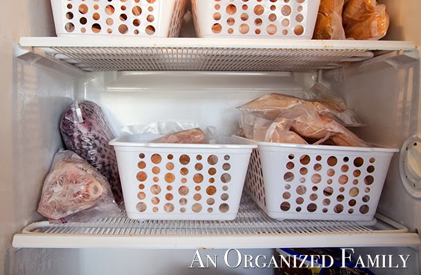 I am not a huge fan of chest freezers. Everything seems to get lost in the abyss and it is not easily organized. So that is why I was super excited to find an upright freezer on the local classified ads website for a great price! I love that it takes up the same footprint as my chest freezer, but I'm able to hold so much more and keep it organized!